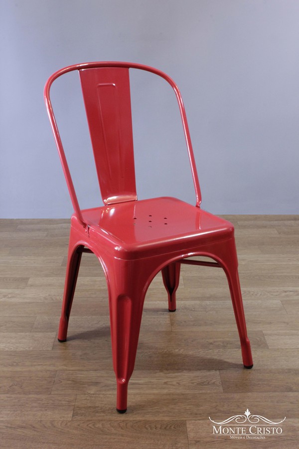 Cadeira Iron vermelha, também disponível em outras cores. Toda em Aço Carbono que garante mais durabilidade e resistência, a cadeira Iron é de origem francesa, ideal para ambientes rústicos e contemporâneos.