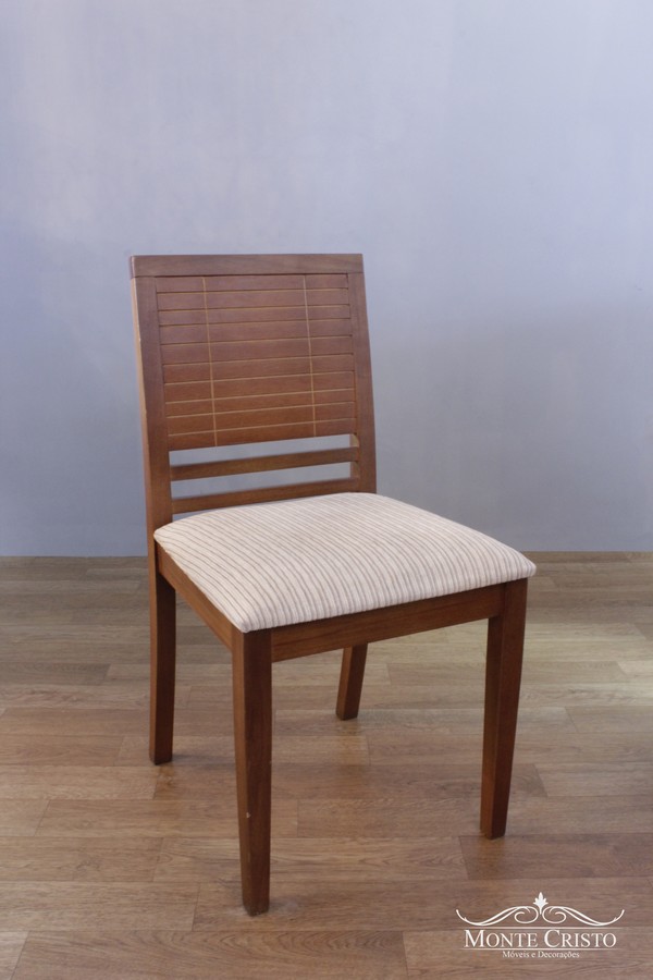 Cadeira K Monique natural com tecido, também disponível em outras cores. Estrutura reforçada que garante maior estabilidade e segurança, a cadeira Monique é fabricada na madeira Imbuia que recebe tratamento contra cupim além de seladora que a impermeabiliza.