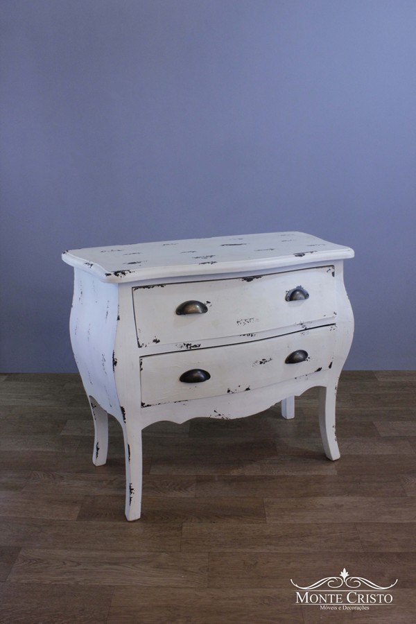 Cômoda Bombê Dorothy branco Provençal, também disponível em outras cores e medidas. O estilo clássico do design bombê sofreu alterações ao longo dos séculos, fazendo com que esse estilo nunca saísse de moda. Esse móvel pode ser fabricado em diversos tamanhos e acabamentos. Todos os nossos móveis recebem tratamento contra pragas além de seladora que a impermeabiliza.