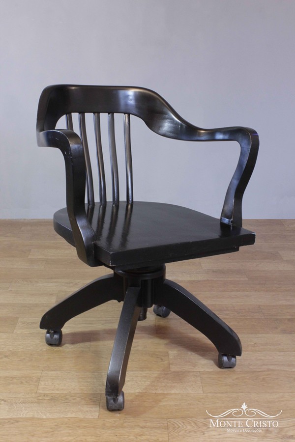 Poltrona Sheriff preto provençal, também disponível em outras cores. Estrutura reforçada que garante maior estabilidade e segurança, a poltrona Sheriff é fabricada na madeira Jequitibá que recebe tratamento contra cupim além de seladora que a impermeabiliza. Essa poltrona possui regulagem de altura.